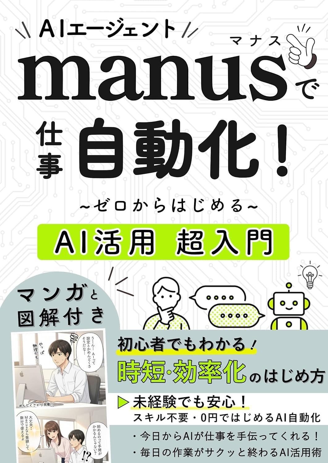 - 【書籍5】『AIエージェント Manus(マナス)で仕事自動化!ゼロからはじめるAI活用 超入門』(AIエージェント業務効率化研究会 ほか)
